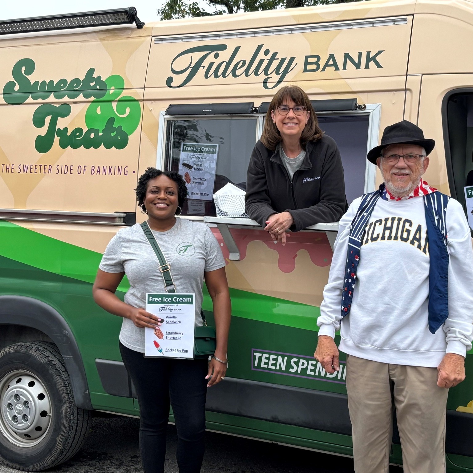 The Fidelity Bank Sweets & Treats Truck is the whimsically decorated ice cream truck serving Northeastern Pennsylvania and the Lehigh Valley. It’s the sweeter side of banking, offering free ice cream bars in the warm months and hot chocolate during the cold months to the public at various events throughout the communities we serve.